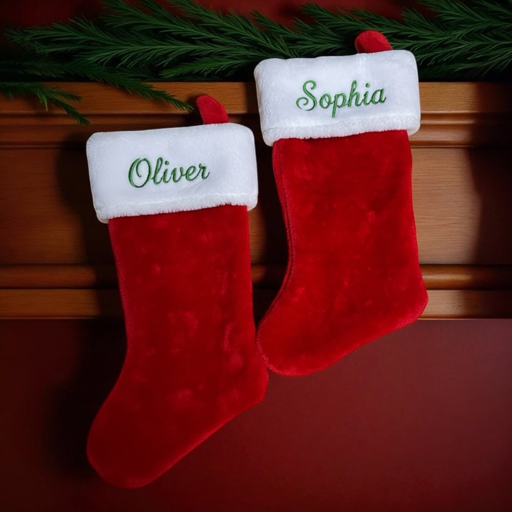 Bring a little extra holiday magic to your home with our Custom Plush Embroidered Christmas Stockings. Each stocking is soft, cozy, and beautifully embroidered with the name of your choice, perfect for kiddos, pets, or anyone on your list.
