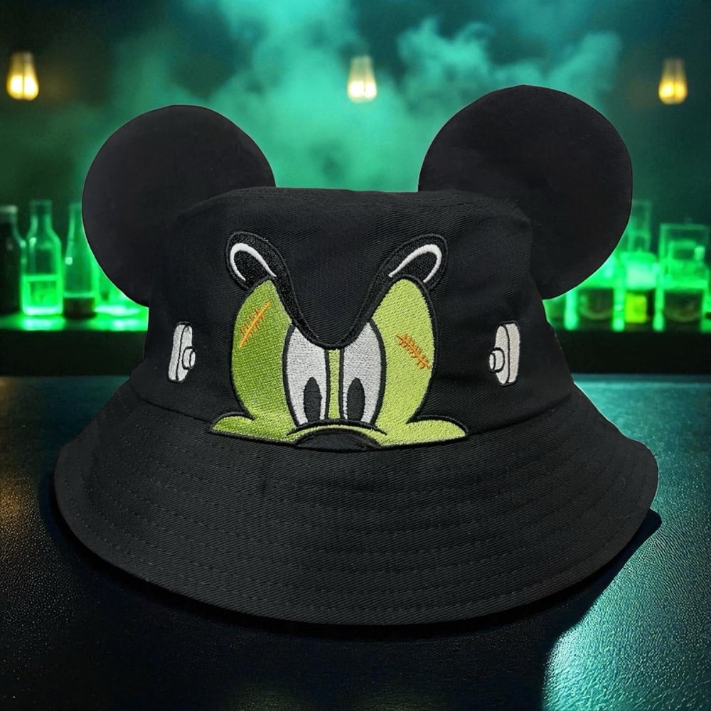 He’s Alive! ⚡ Frankenstein Mickey Bucket Hat with Sewn-On Ears – Embroidered Spooky Halloween Hat