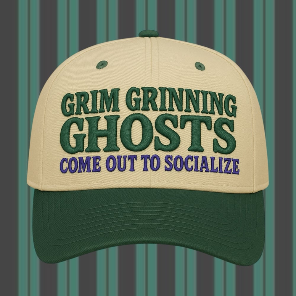 “GRIM GRINNING GHOSTS” in rich dark green and “COME OUT TO SOCIALIZE” in playful purple, this hat is the perfect mix of spooky and stylish. A must-have piece for Disney fans and ghostly souls alike. 👻